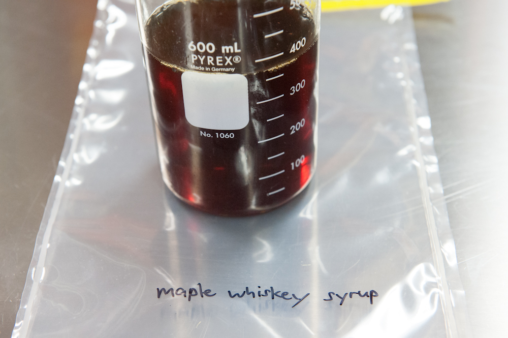 Without further adieu, here is today’s experiment. First started with maple whiskey, handcrafted in Canada. I love maple syrup, so it’s no surprise I would also love it in alcohol form. First I distilled it to separate the alcohol and some volatiles from the water.