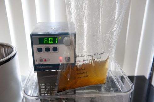 First post with the new site! What better way than to celebrate it with some alcohol…rotovaped, sonicated and sous vide. Before we go to that, just need to mention that the old site is still up but will be left like an abandoned insane asylum, sans creep factor. You can find the link up top, entitled previous website (Playing with food and Gel).