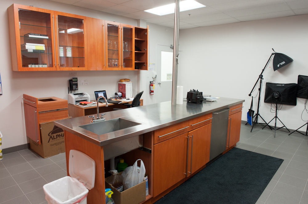 View from near the door. Main counter is where all the prep happens. Scale and Vitamix are probably the most used tools. No cutting, peeling, or any sort of prep work is to be done on the side where the stove is! Equipments on the stove side are as follows (from left to right): SonicPrep, Rotary evaporator, combustible gas ignition unit (aka stove, haha), oil bath, immersion circulator. Microwave and convection oven at the side. Cabinets contain all the gums, spices and other ingredients.