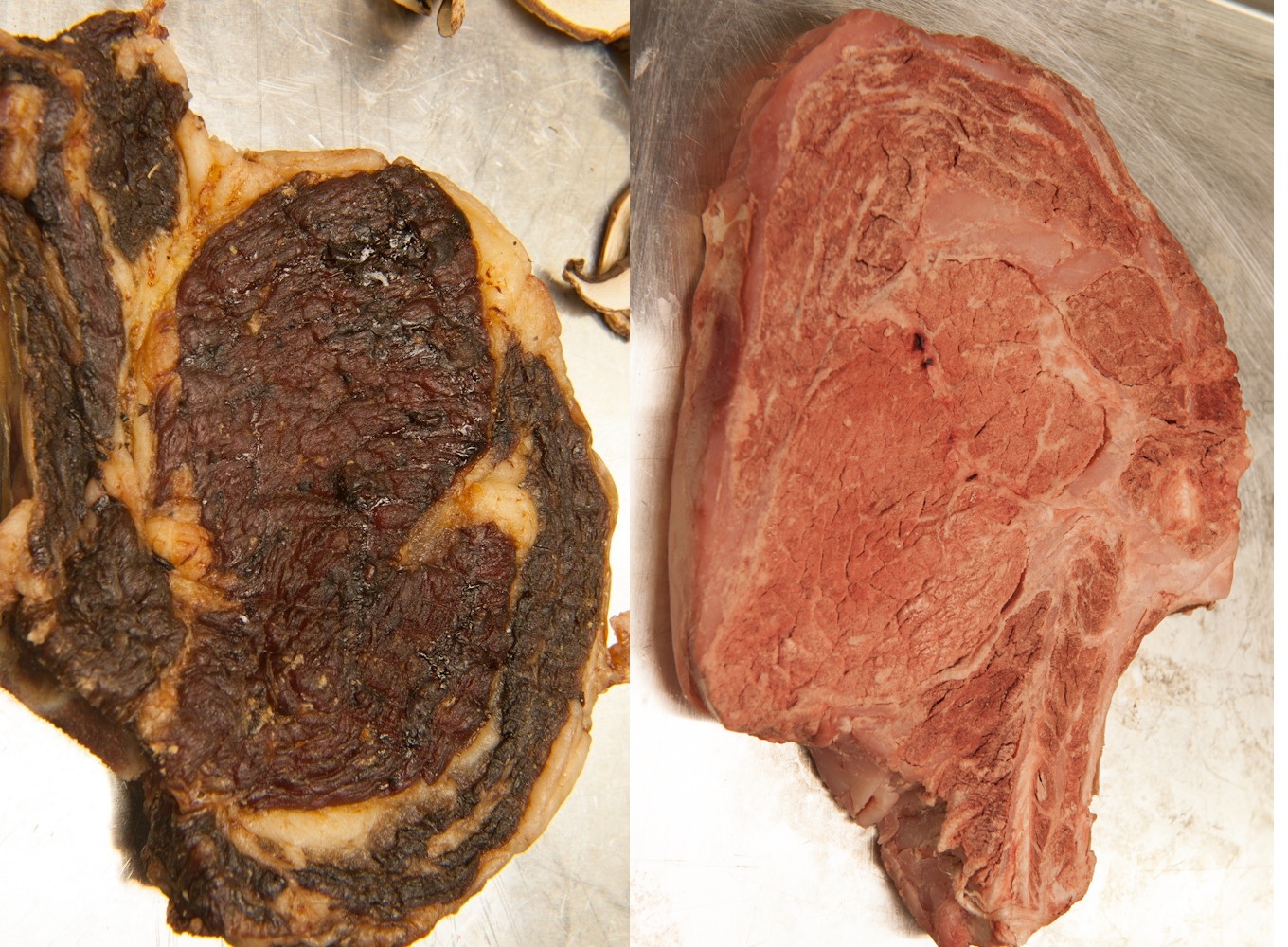 Here the differences are very obvious. Essentially, the steak is already cooked when processed in the CD, as the temperature was at 60c. Also, there was still plenty of moisture left in the interior of the CD steak. For the FD steak, colour is still very red, and preserved. Again, no cooking or oxidizing of the fat due to lower temperature and pressure.