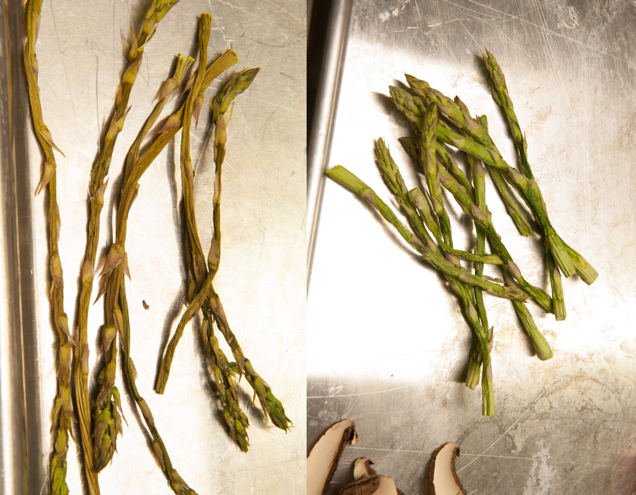 Foods dehydrated are – rib eye steak, sliced portobello mushrooms, blueberries, raspberries, asparagus. Foods were raw, then frozen overnight in a regular freezer (wish I had a blast chiller).