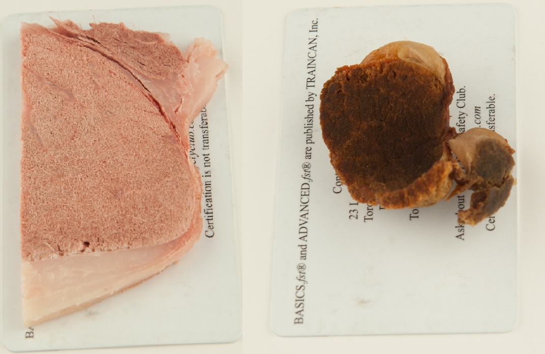Here, you can see a before and after photo of the strips. It still shrinks quite significantly after cooking. The taste was not bad, but not delicious either. I tried frying it in both canola oil and butter. The meat really takes on the flavour of the fat being used. That being said, it still wasn’t really delicious with the butter. Also, if the piece was just a little too thick, the texture was like chewing on woodchips, at least what I imagine chewing on woodchips would be like.