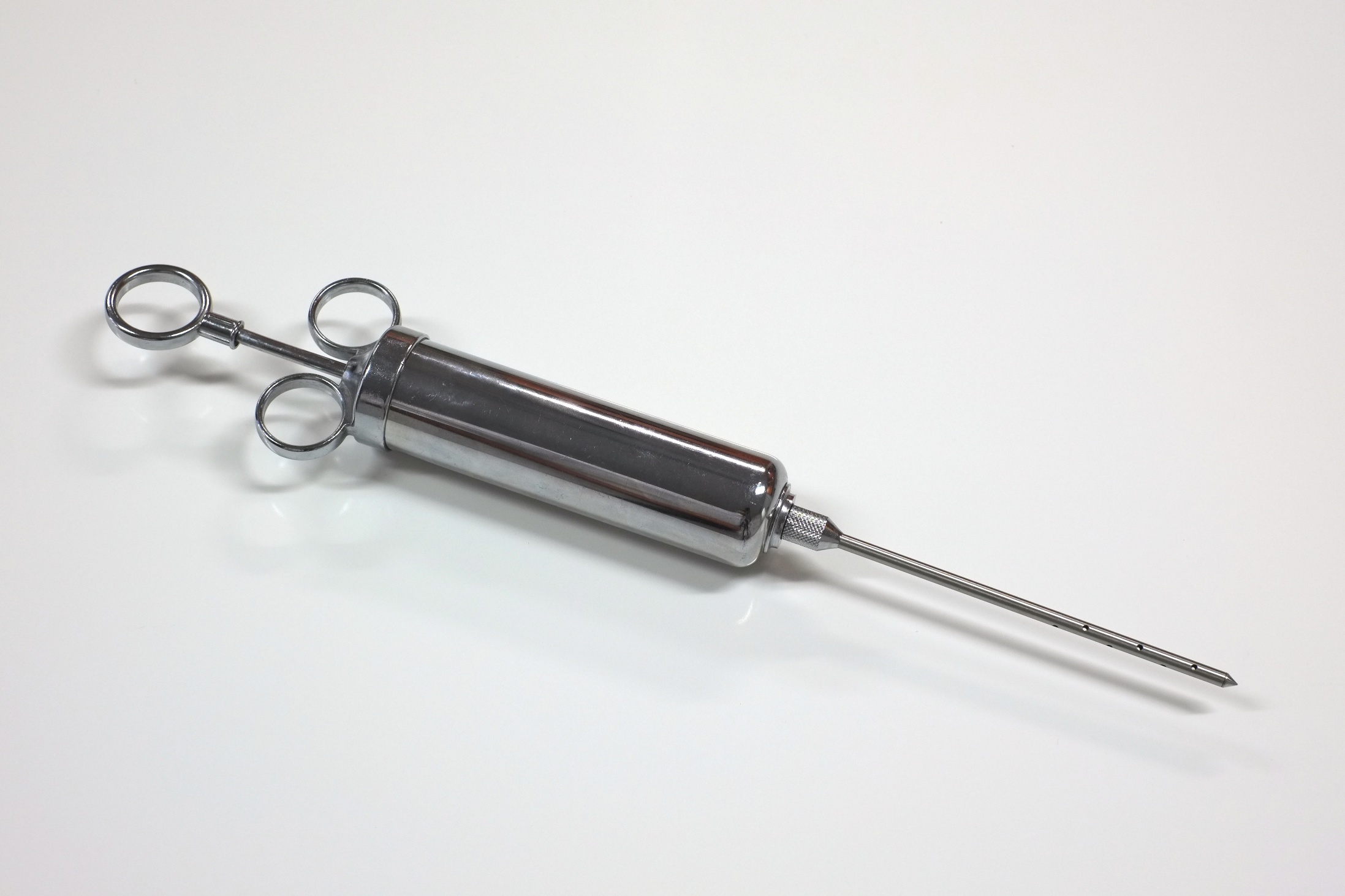 Tool of choice – Handheld meat injector. Notice the holes on the sides of the needle.