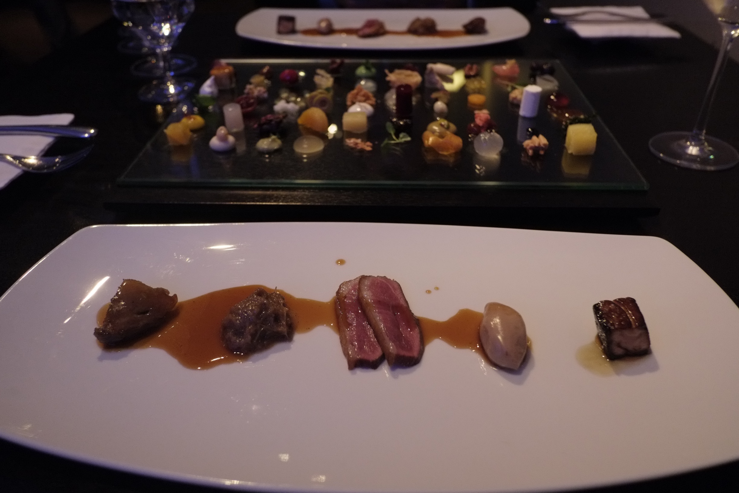 If you search the Alinea channel in Youtube, you’ll see this dish somewhere there. Though, in that video it was lamb, we had duck 5 ways, with 60 garnishes, yes 60! Still just taken aback at how much prep this dish takes.
