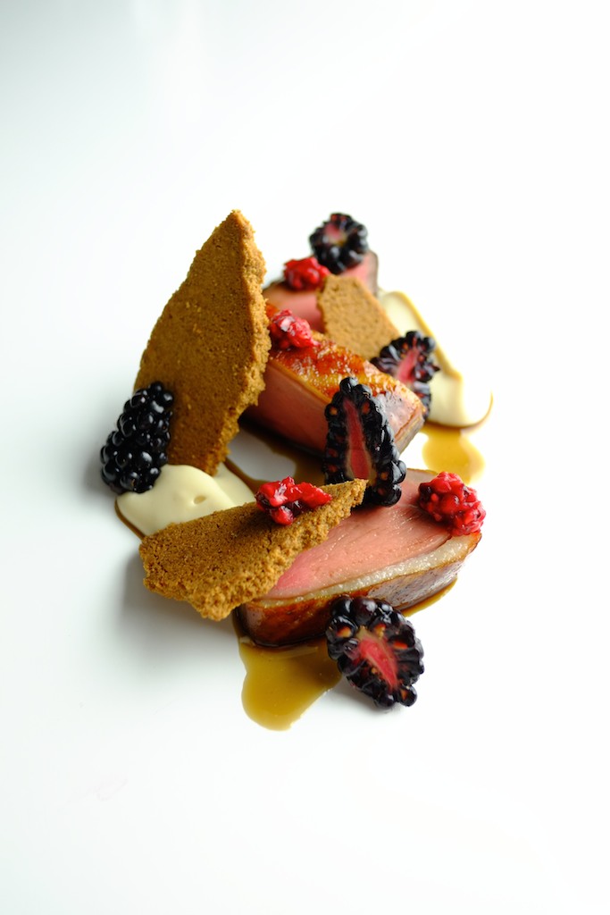 The blackberries were just split in half, marinated with sugar and balsamic vinegar.